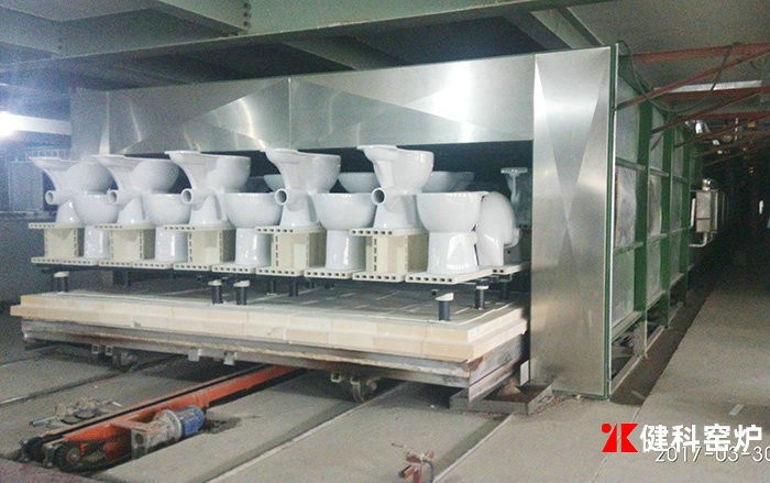 在臺(tái)車上放置裝入陶瓷制品的匣缽,連續(xù)地由預(yù)熱帶的入口慢慢地推入(常用機(jī)械推入),而載有燒成品的臺(tái)車,就由冷卻帶的出口漸次被推出來(約1小時(shí)左右,推出一車)。