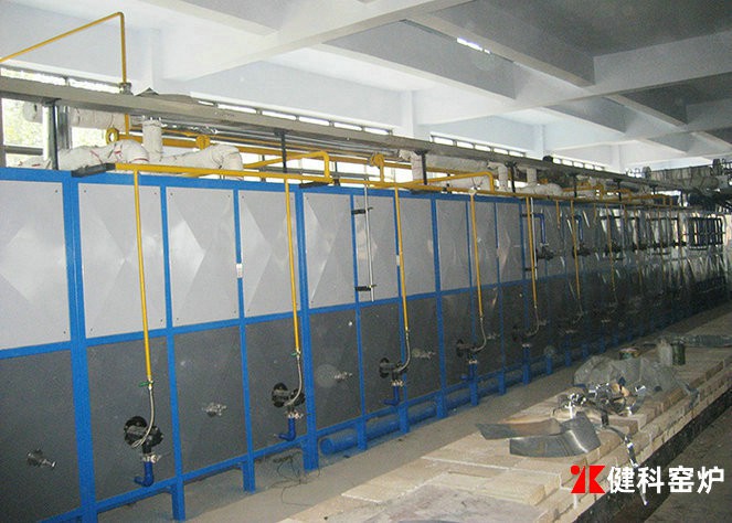 燃料燃燒系統(tǒng):包括燃料輸送管道、燃料預(yù)熱、燃燒器等。隧道窯的加熱燃燒主要是重油,輕柴油,和天然氣煤氣,原有的直燃煤方式已不多用。油類燃燒配備有儲(chǔ)油罐和燃燒噴嘴。因油類成本較高使用較多的仍是天然氣和煤氣,天然氣是通過天然氣管道將天然氣輸送至窯爐有專門的天然氣燒嘴進(jìn)行噴射燃燒。煤氣燃燒除了有專一的煤氣管道輸送至爐窯外,隧道窯用戶大都自備有煤氣發(fā)生爐進(jìn)行煤氣的生產(chǎn),由煤氣發(fā)生爐所產(chǎn)的煤氣經(jīng)過管道輸送至隧道窯燃燒室,通過煤氣燒嘴進(jìn)行噴射燃燒。